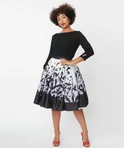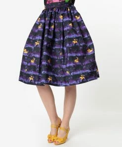 Vixen By Micheline Pitt Flutter Skirt In Vintage Blue & Red Rose Print – Vixen By Micheline Pi