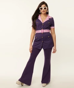 This 1970s Wide leg Jumpsuit is so Groovy! featuring a button neck, V neckline with front zipper, side pockets and our fan loved Wide legs! Made in a comfy stretch poly knit like our Limelight Jumpsuit, with a generous fit in the hips and torso, works on many body shapes!