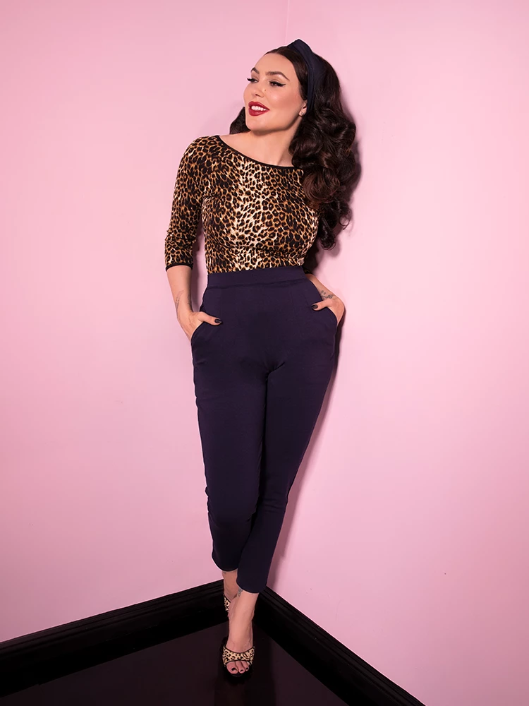Inspired from a mixture of 1960’s and 1980’s fashions, this new version of our classic vintage inspired cigarette pants is the perfect style for work or play. These new cigarette pants are made from a soft ponte to showcase the shape of the wearer’s silhouette while giving you a full range of movement. Made from the softest high quality nylon/rayon/spandex on the market. Features a YKK zipper and inset pockets that will fit your smartphone.