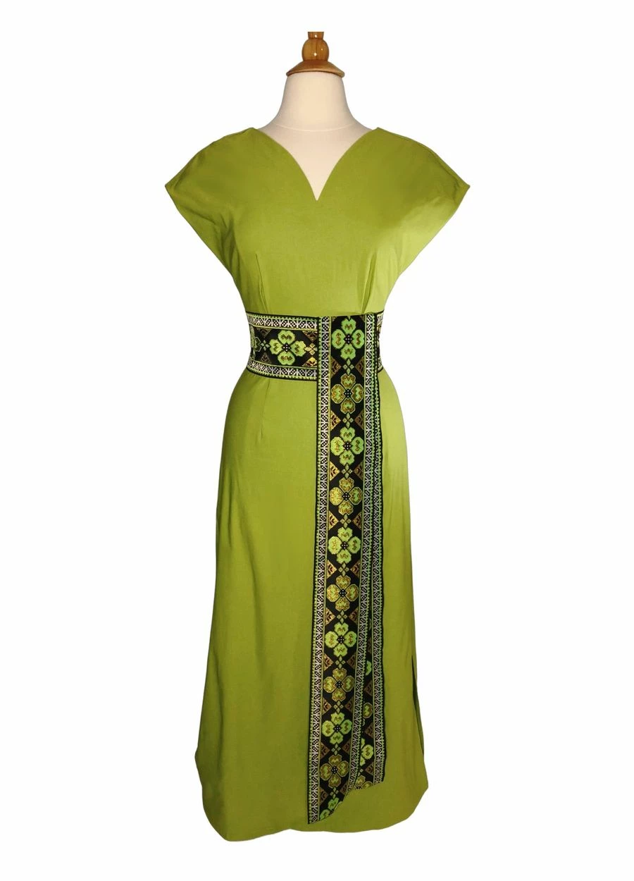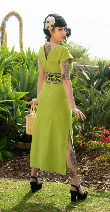 This absolute gorgeous Vintage Inspired Fabulous 1950’s Richard Douglas Honolulu dress in the brightest lime green… with matching tiki inspired sash.