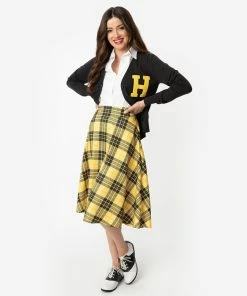 Unique-Vintage X Harry Potter Unique-Vintage X House Rules – Black & Yellow Plaid High Waist Vivien