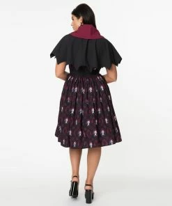 Vixen By Micheline Pitt Flutter Skirt In Vintage Blue & Red Rose Print – Vixen By Micheline Pi