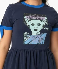 Vixen By Micheline Pitt Romantique Swing Dress In Vintage Blue & Red Rose Print – Vixen By Mic