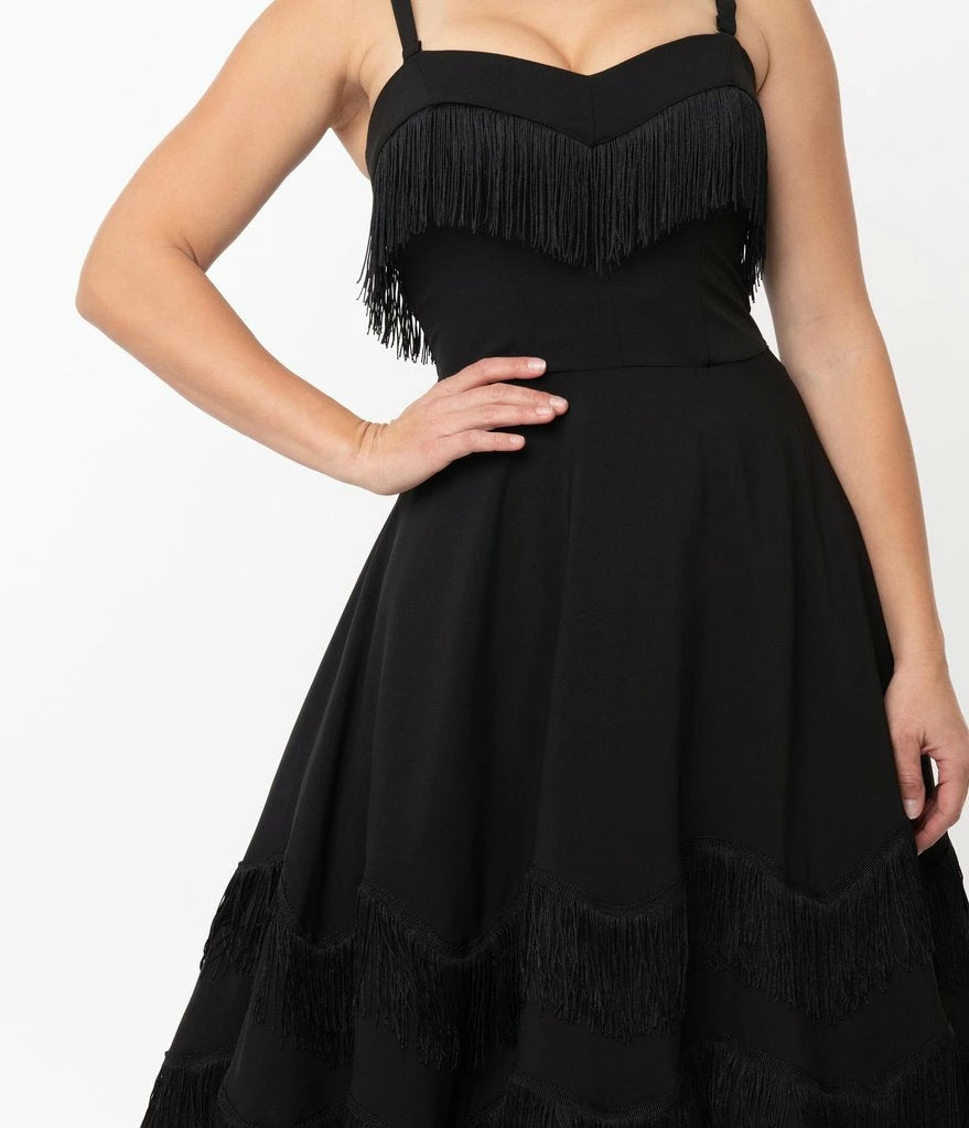 Unique-Vintage Black Fringe Girlie Dress