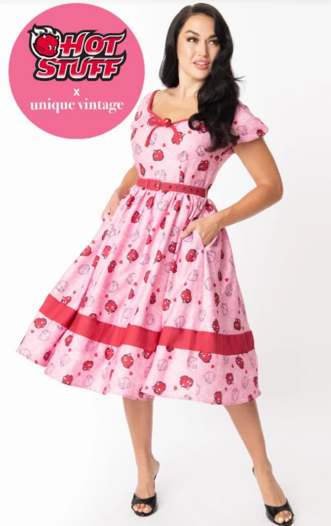Hot Stuff x Unique Vintage Little Devil Print Hannah Swing Dress