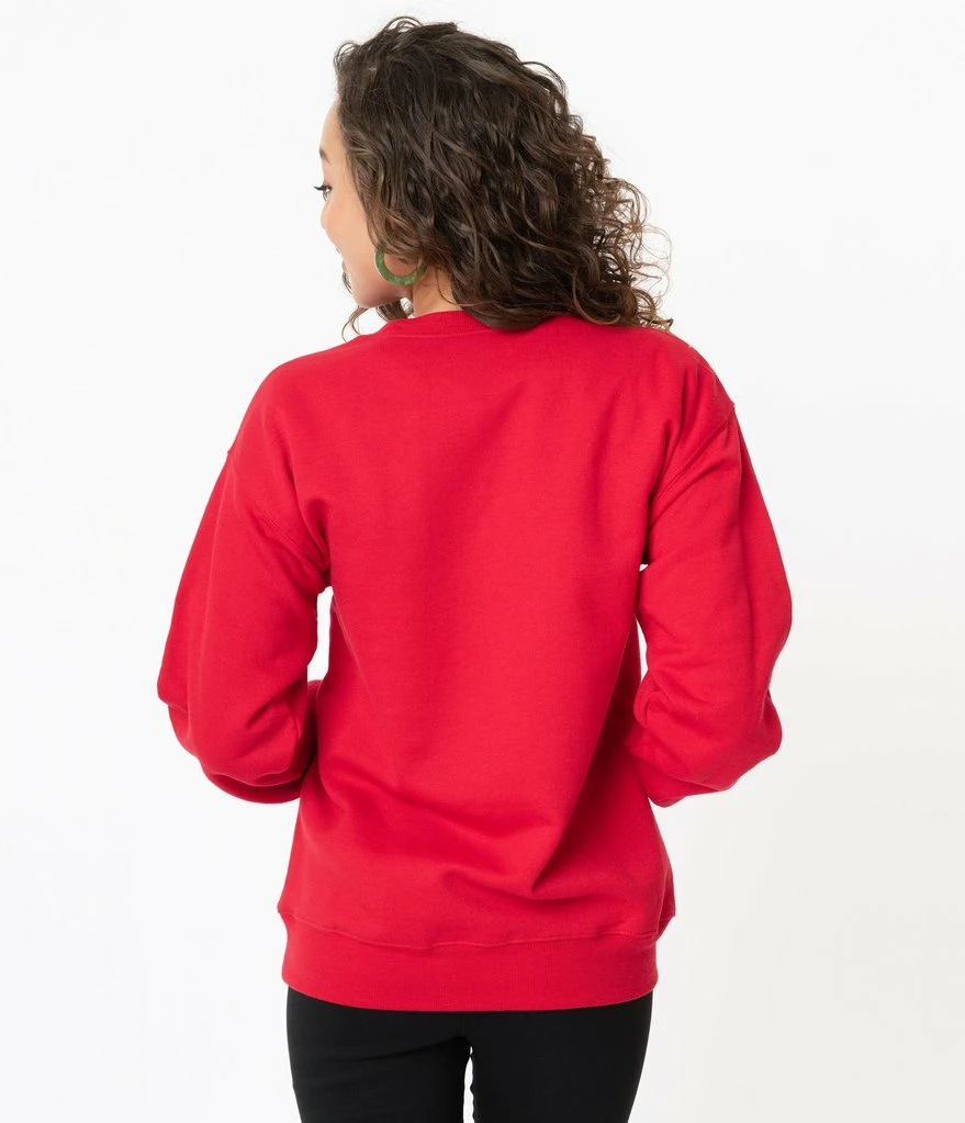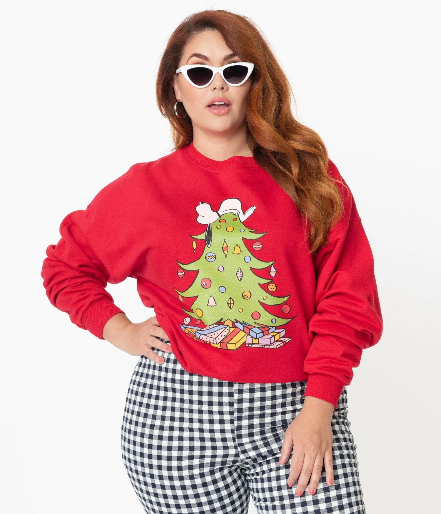Top your tree with the cutest star! For those with a merry soul comes a jolly red sweatshirt from Unique Vintage, in collaboration with Peanuts. Crafted in a cozy French Terry, the classic crew neckline is framed by long sleeves and banded cuffs while a graphic print on the front showcases Snoopy resting on top of a decorated Christmas tree. Do the happy dance!