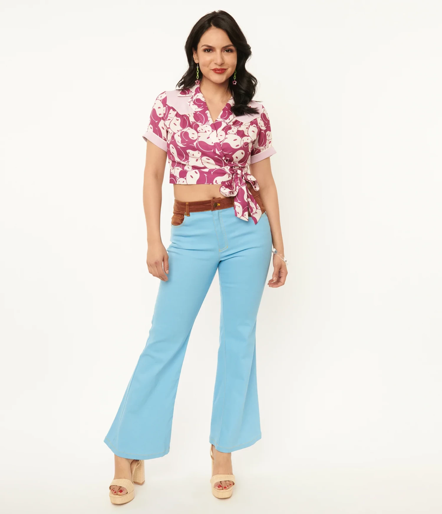 These cheerful jeans, in collaboration with Smiley®, are crafted in a sturdy light blue denim, topped with brown corduroy and featuring a cheerful embroidered pattern of Smiley® daisies on the back. The banded waist is secured with a classic front fly and button while side pockets provide function to these bell-bottom classics!
