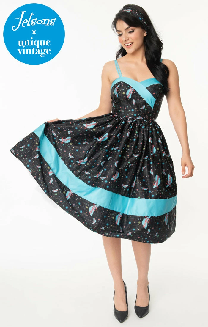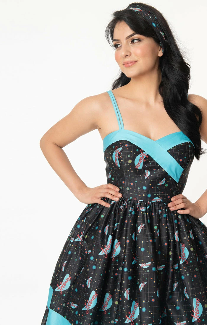 Jetsons x Unique Vintage Retro Cosmic Logo Darienne Swing Dress