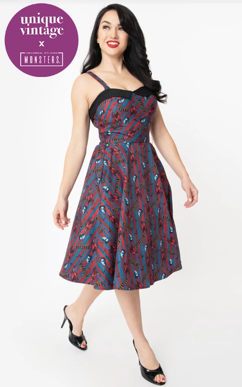 Universal Monsters x Unique Vintage Dracula Print Rachel Dress